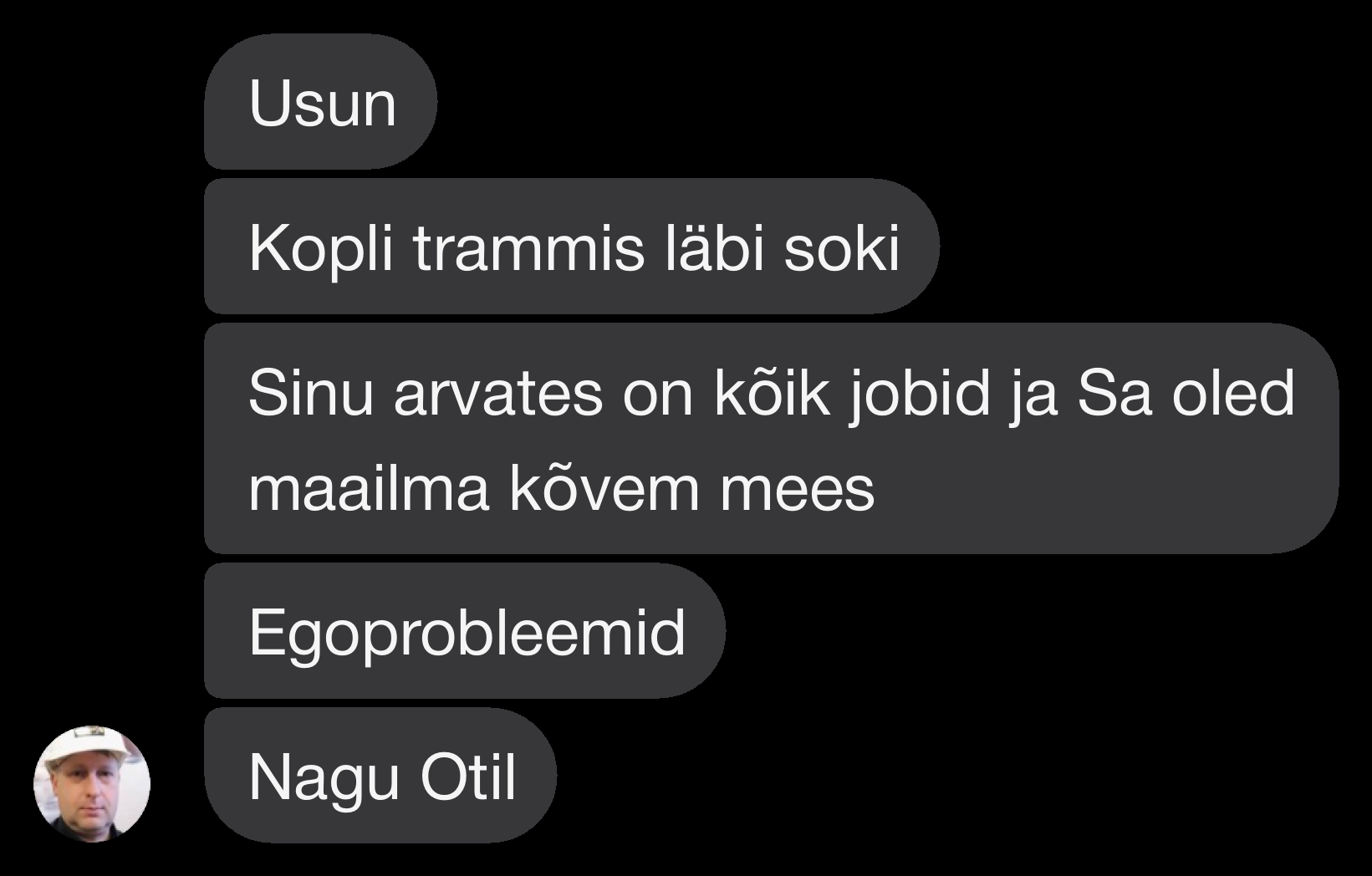 Sinu arvates on kõik jobid ja Sa oled maailma kõvem mees